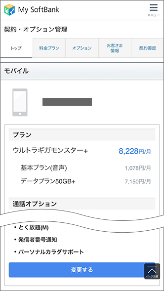 ※ご加入の料金プランやオプションサービス、契約更新月がご確認できます。