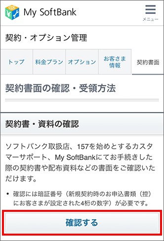 照会・設定>契約情報>契約書面>契約書・資料の確認>該当のご契約文書