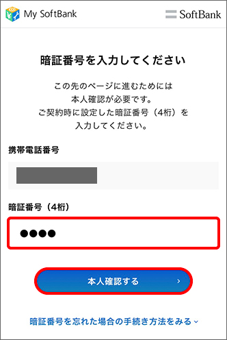 ⑤暗証番号をご入力し「本人確認する」をタップ
